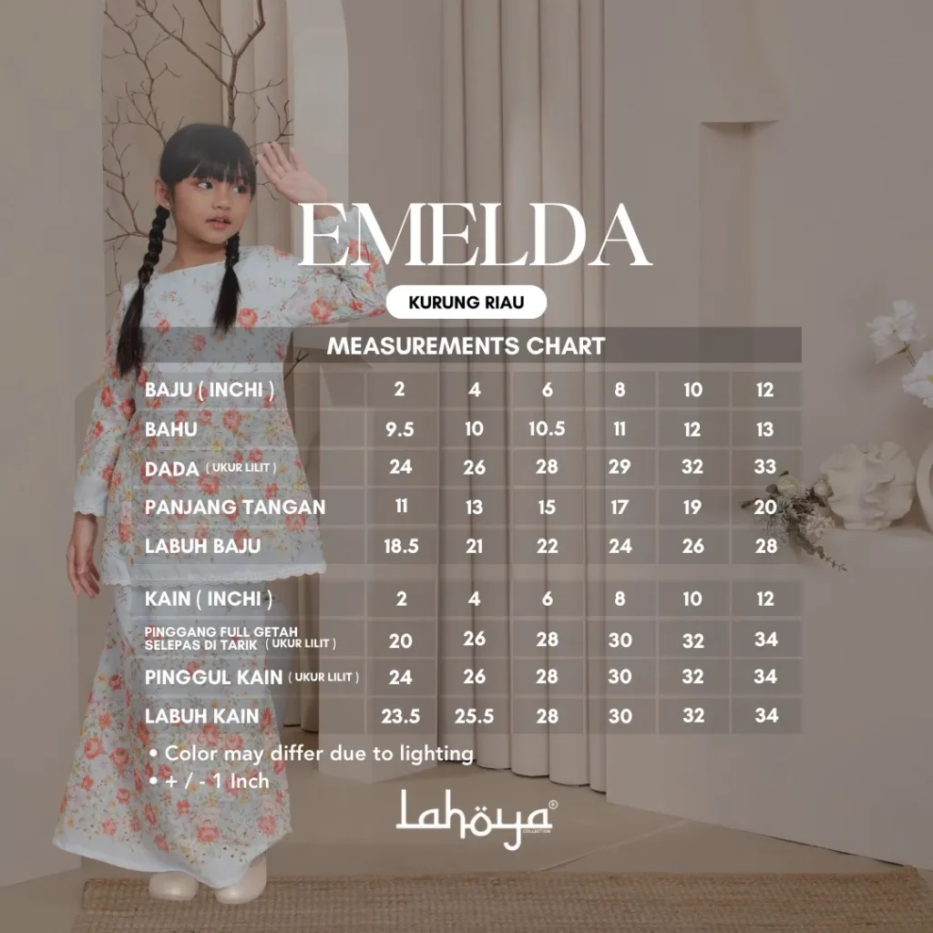 Lahoya Kurung Emelda (Kurung Riau Kids ) dengan corak fabrik yang lebih Moden dan Terkini sesuai untuk kanak-kanak yang berumur dari 1 tahun – 12 tahun.