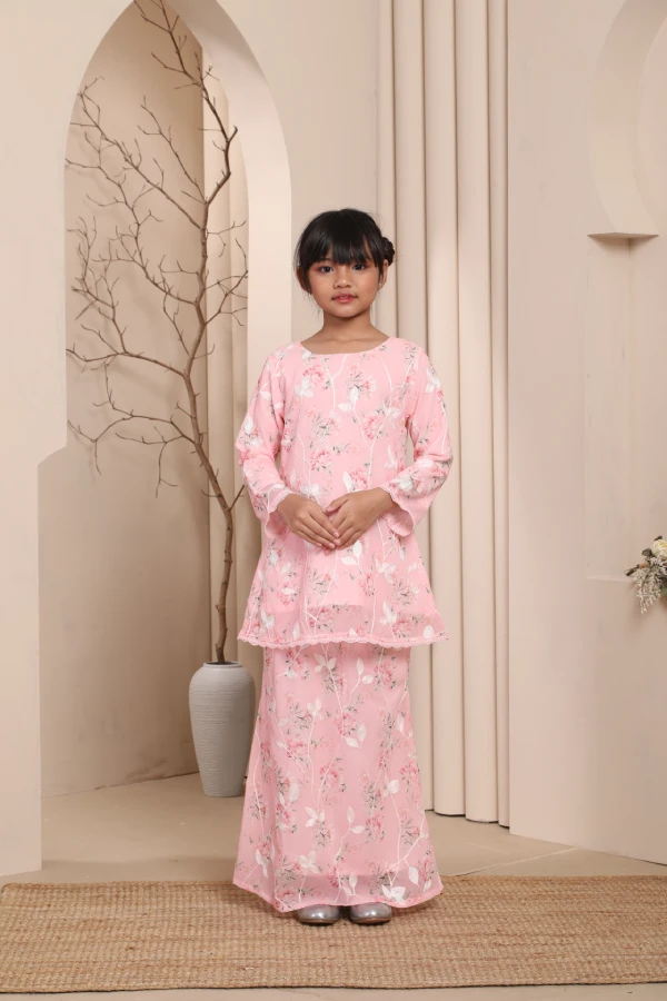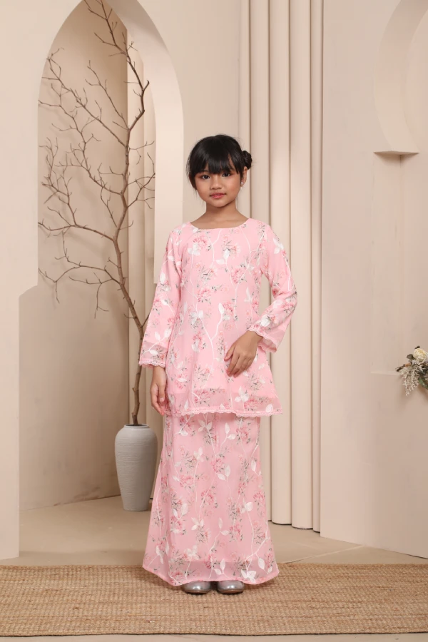Penggunaan material Chiffon Embroidery yang terbaik serta berkualiti tinggi amatlah sesuai untuk digayakan di acara-acara rasmi seperti ke majlis keramian, kendur kendara, majlis kesyukuran dan sebagainya. Dengan penggunaan material yang lembut membuatkan kanak-kanal lebih bergaya dan selesa sepanjang hari.