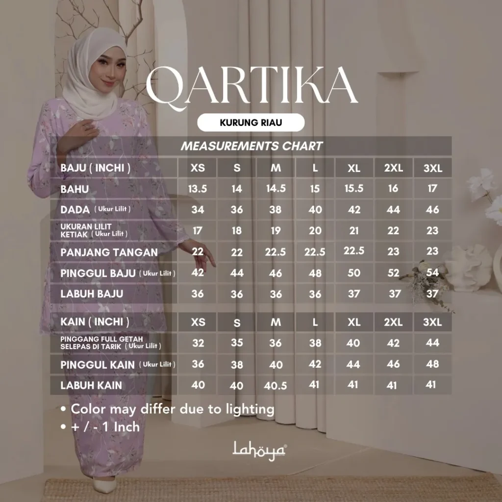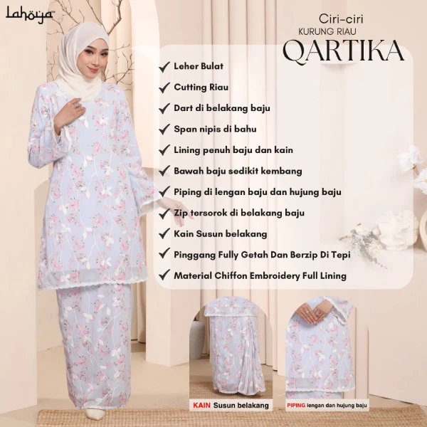 Lahoya Kurung Qartika (Kurung Riau) dengan corak fabrik yang lebih Moden dan Terkini sesuai untuk semua golongan.