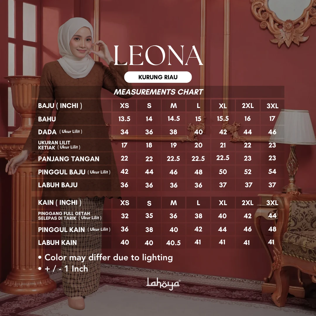 Lahoya Kurung Leona (Kurung Riau) dengan corak fabrik yang lebih Moden dan Terkini sesuai untuk semua golongan.