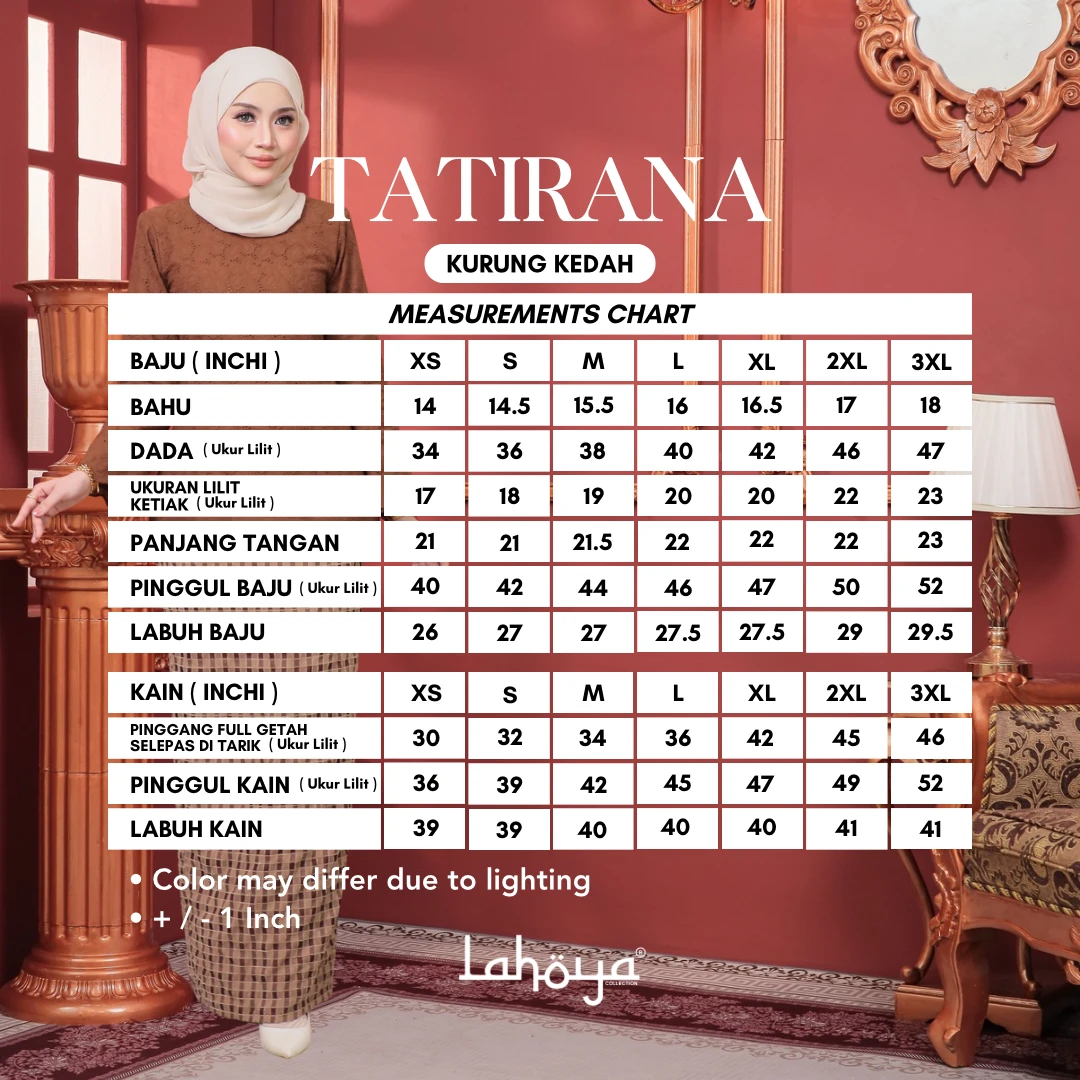 Lahoya Kurung Leona (Kurung Riau) dengan corak fabrik yang lebih Moden dan Terkini sesuai untuk semua golongan.