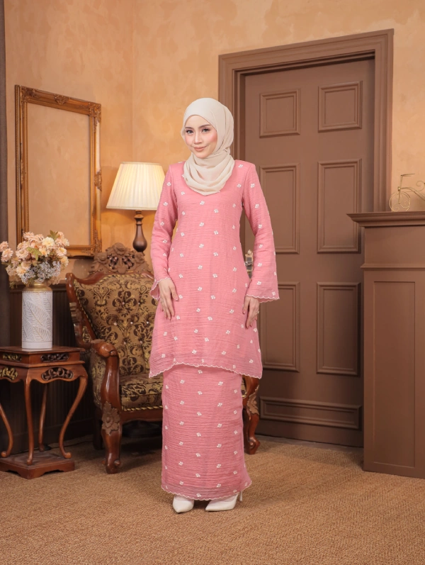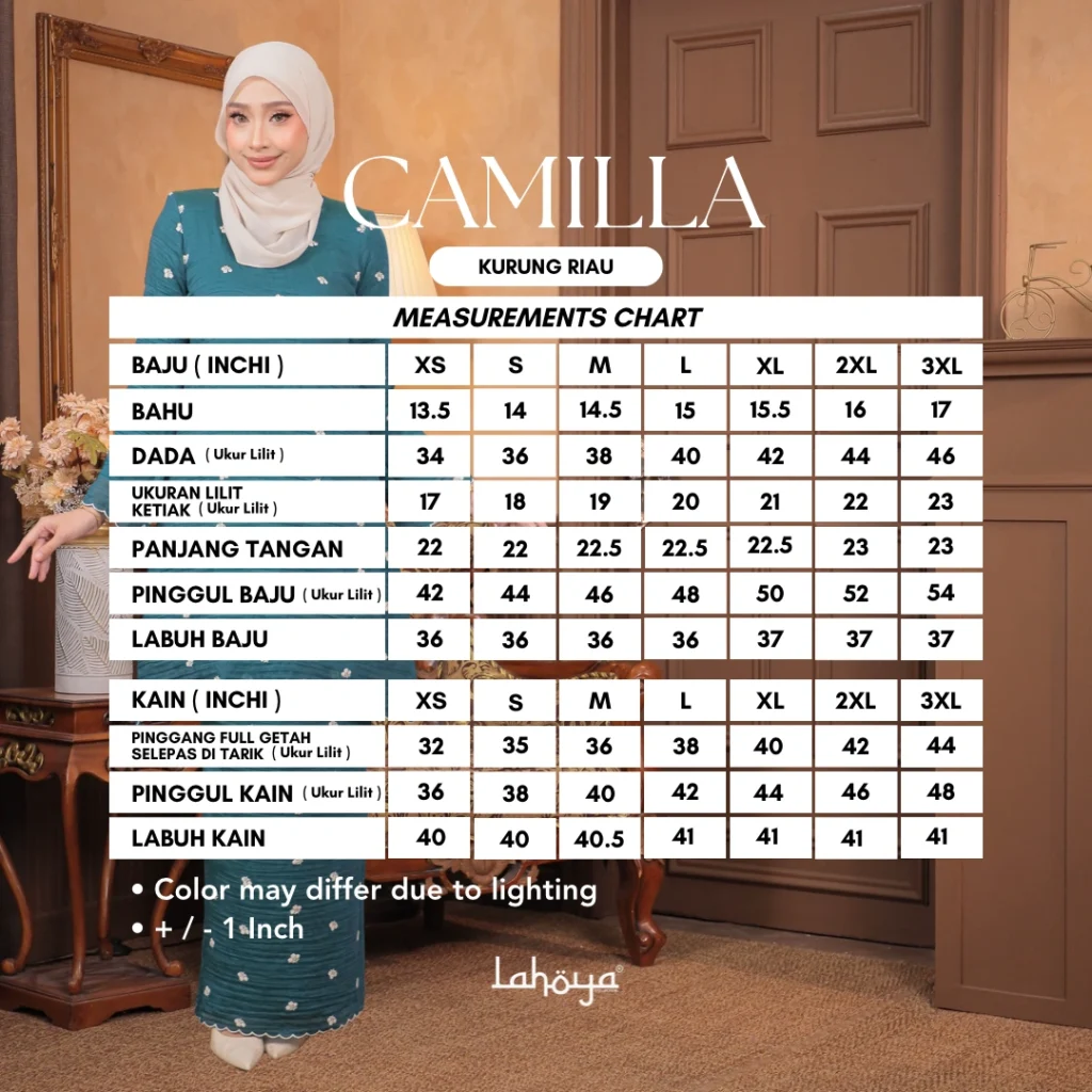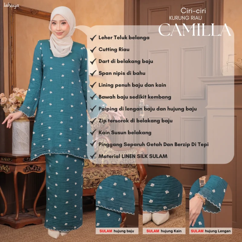 Lahoya Kurung Camilla (Kurung Riau) dengan corak fabrik yang lebih Moden dan Terkini sesuai untuk semua golongan.