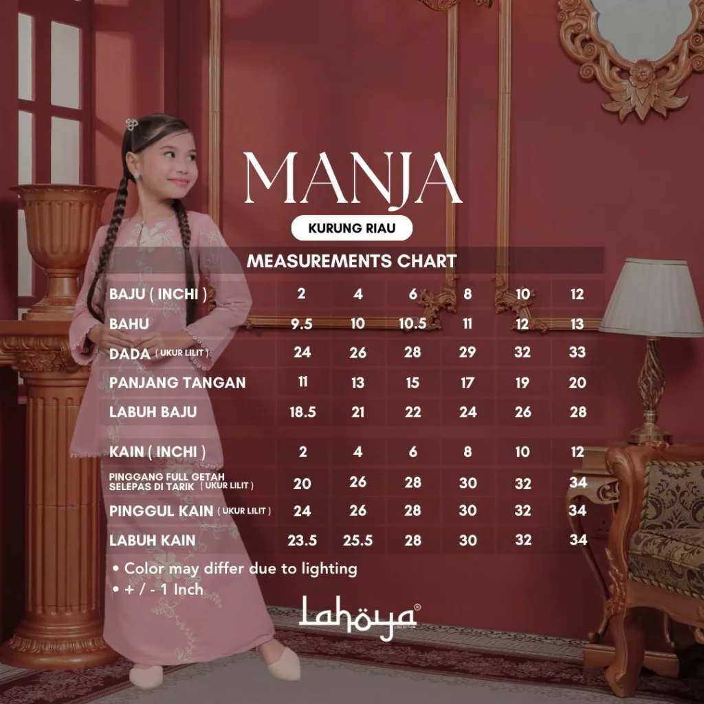 Lahoya Kurung Manja (Kurung Riau Kids ) dengan corak fabrik yang lebih Moden dan Terkini sesuai untuk kanak-kanak yang berumur dari 1 tahun – 12 tahun.