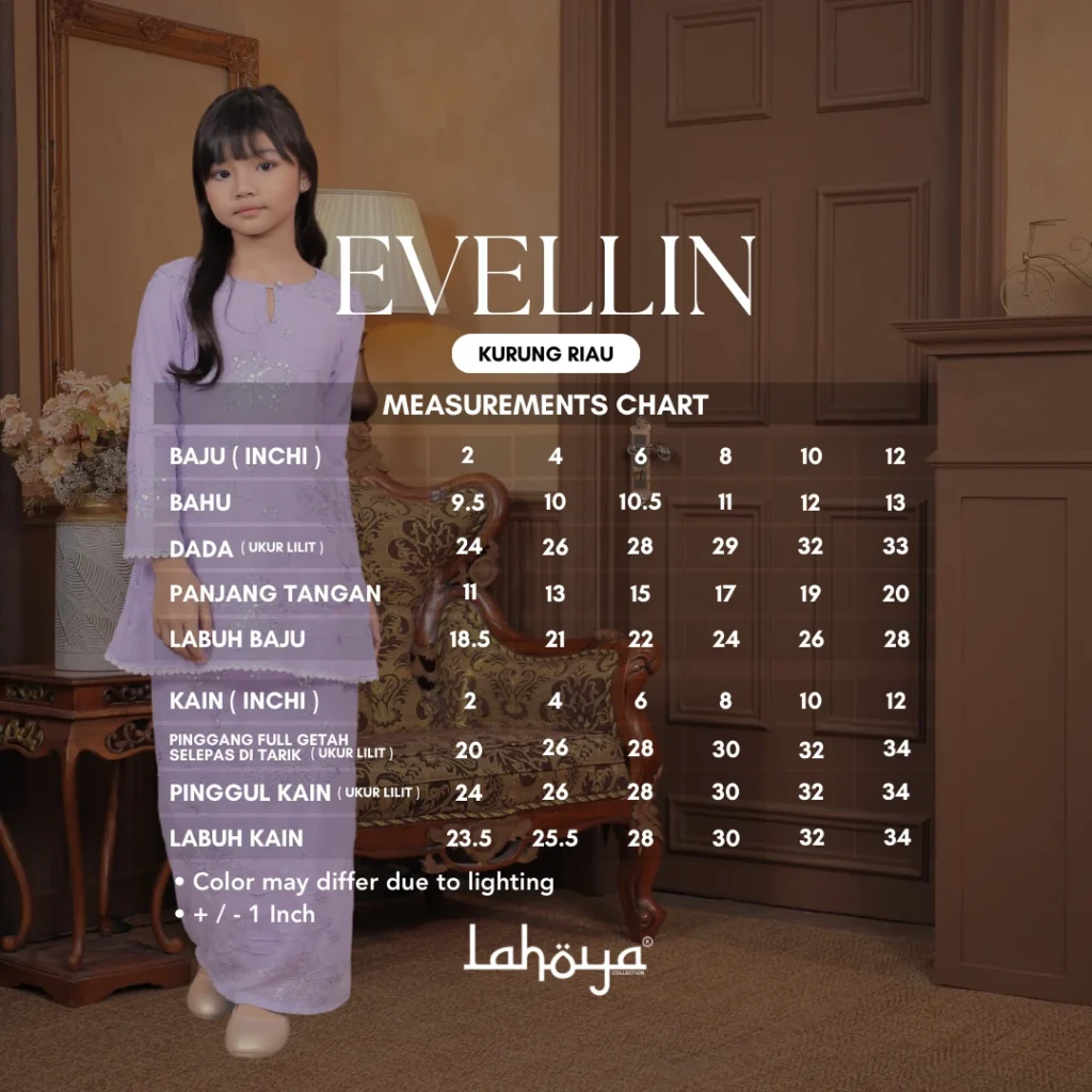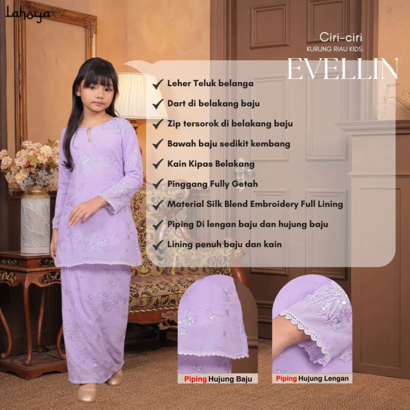 Lahoya Kurung Evellyn (Kurung Riau Kids ) dengan corak fabrik yang lebih Moden dan Terkini sesuai untuk kanak-kanak yang berumur dari 1 tahun – 12 tahun.