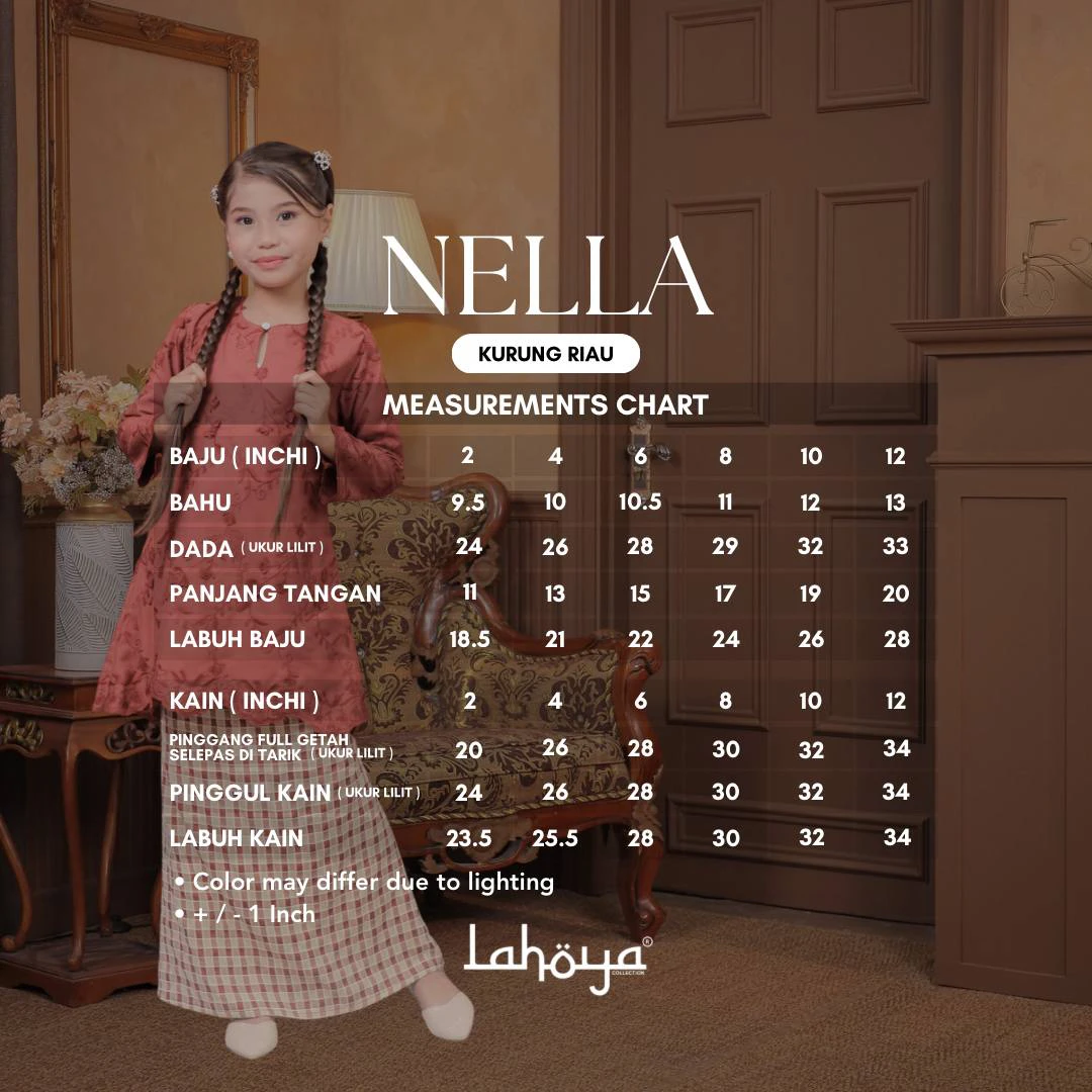 Lahoya Kurung Nella (Kurung Riau Kids ) dengan corak fabrik yang lebih Moden dan Terkini sesuai untuk kanak-kanak yang berumur dari 1 tahun – 12 tahun.